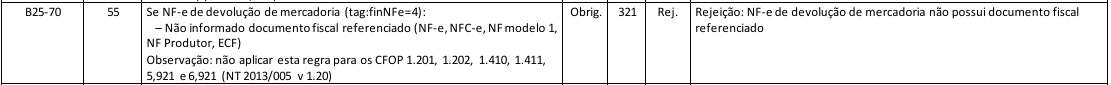 “Rejeição 321: NF-e de devolução de mercadoria não possui documento fiscal referenciado”.