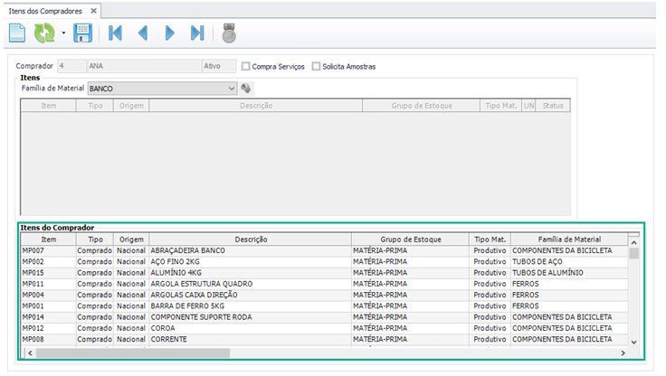 Acesse Compras > Cadastros > Itens dos Compradores (CP0105);