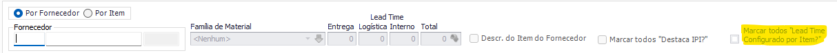 Para configurar o lead time individualmente por item, marque a opção Lead Time Configurado por Item?;