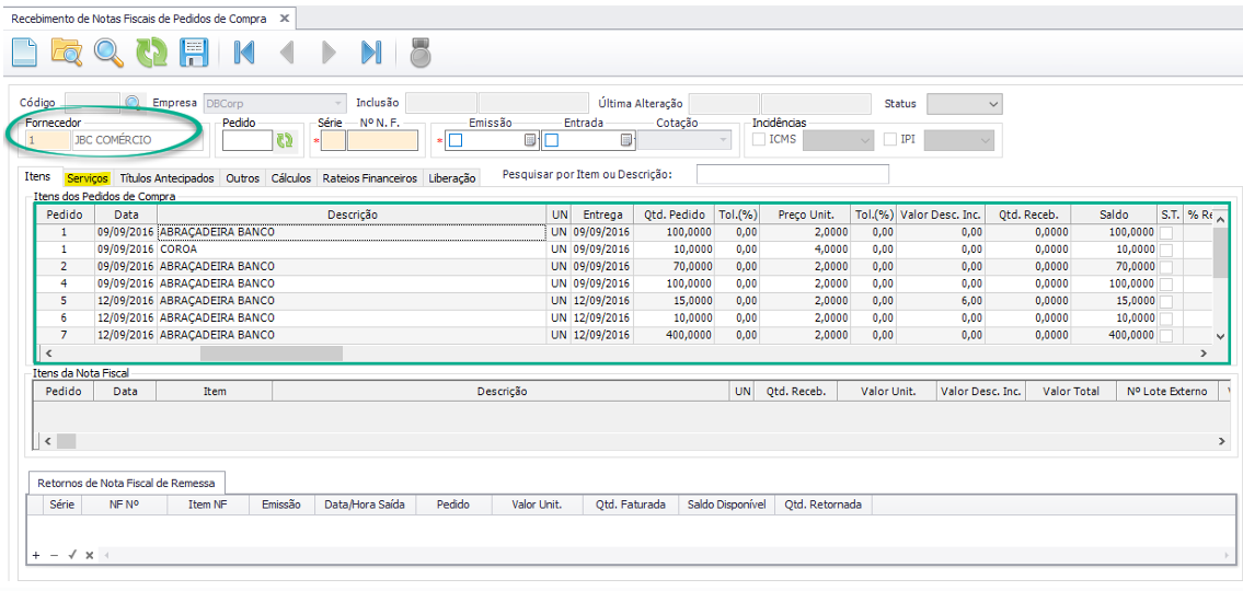 Este artigo orienta como realizar o recebimento de serviços na nota fiscal de pedido de compra.