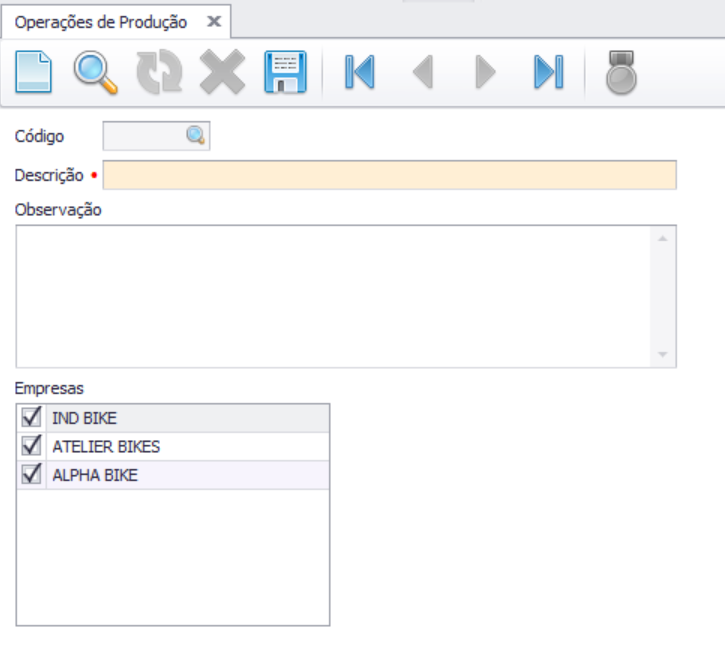 No campo Empresas, selecione as empresas que utilizarão a operação de produção;
