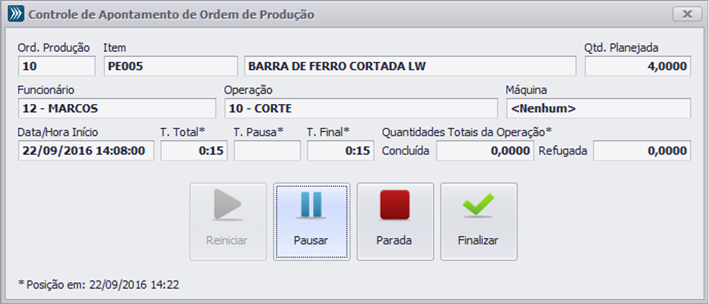 Este artigo explica como pausar, parar ou finalizar uma operação no apontamento de ordem de produção no módulo Manufatura?