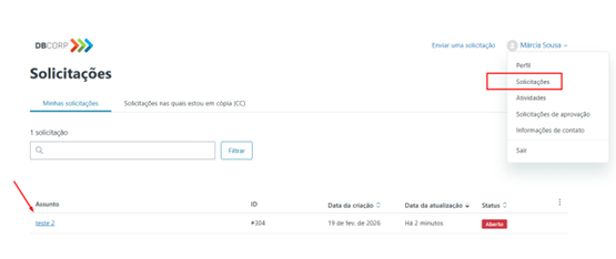 Selecione a opção Solicitações: