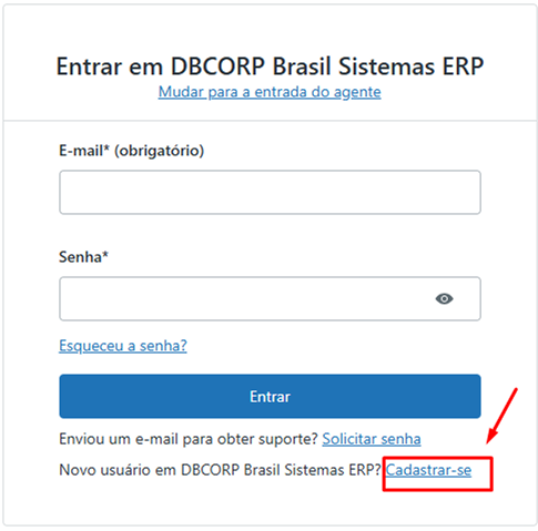 Para se cadastrar no Portal de Suporte DBCORP, realize os passos a seguir: