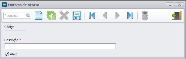 Na tela Motivos de Atraso, clique no botão Novo para incluir um cadastro;