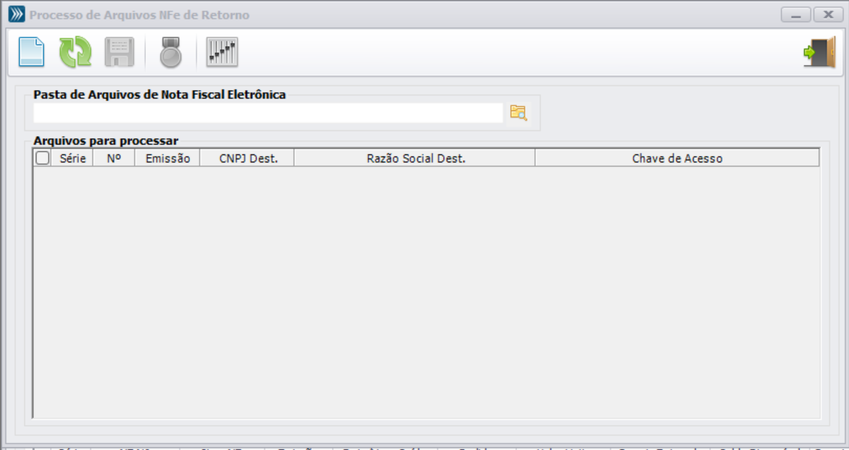 No sistema DBcorp, acesse a tela Processo de Arquivos NF-e de Retorno (FT0212);